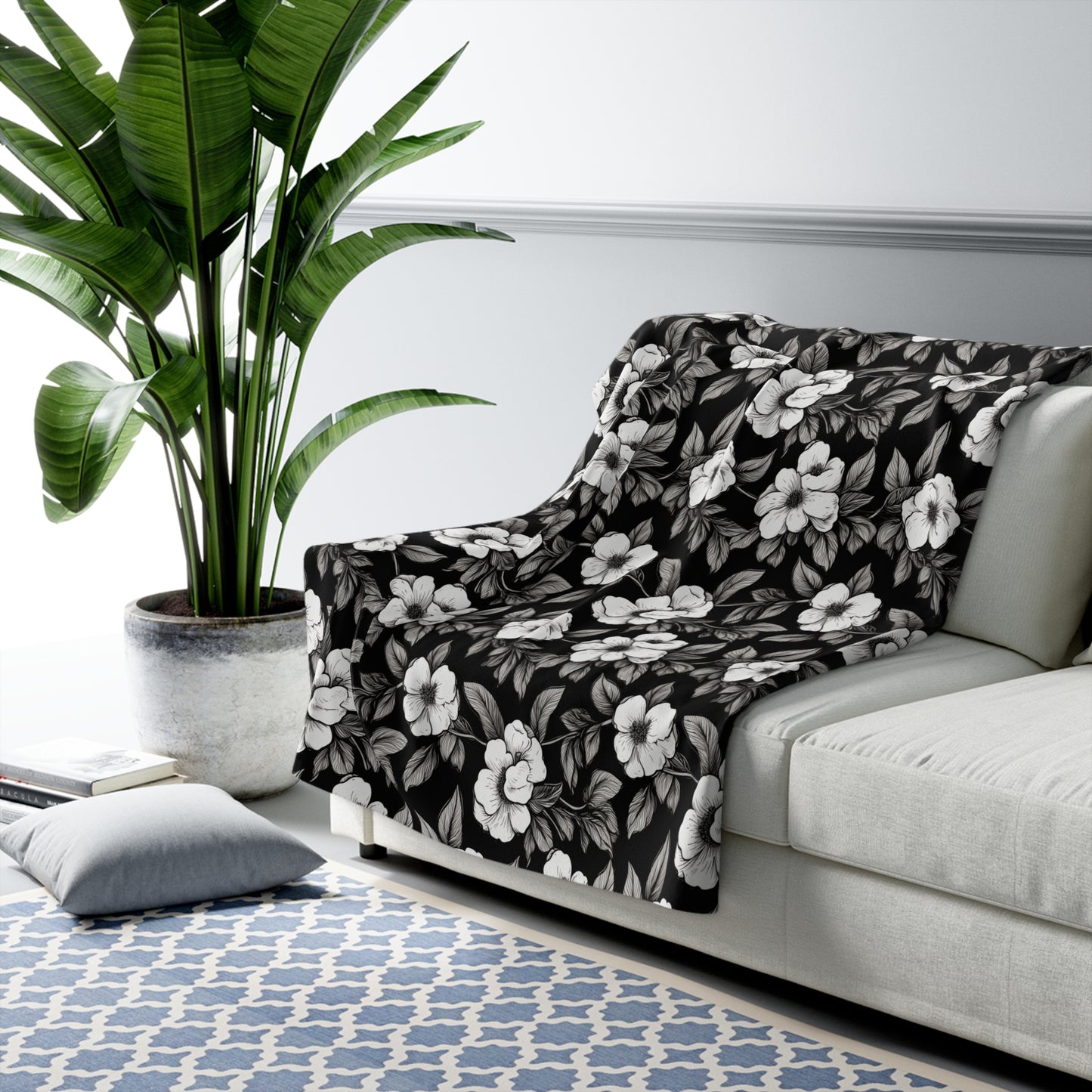 Black & White Daisies Fleece Blanket