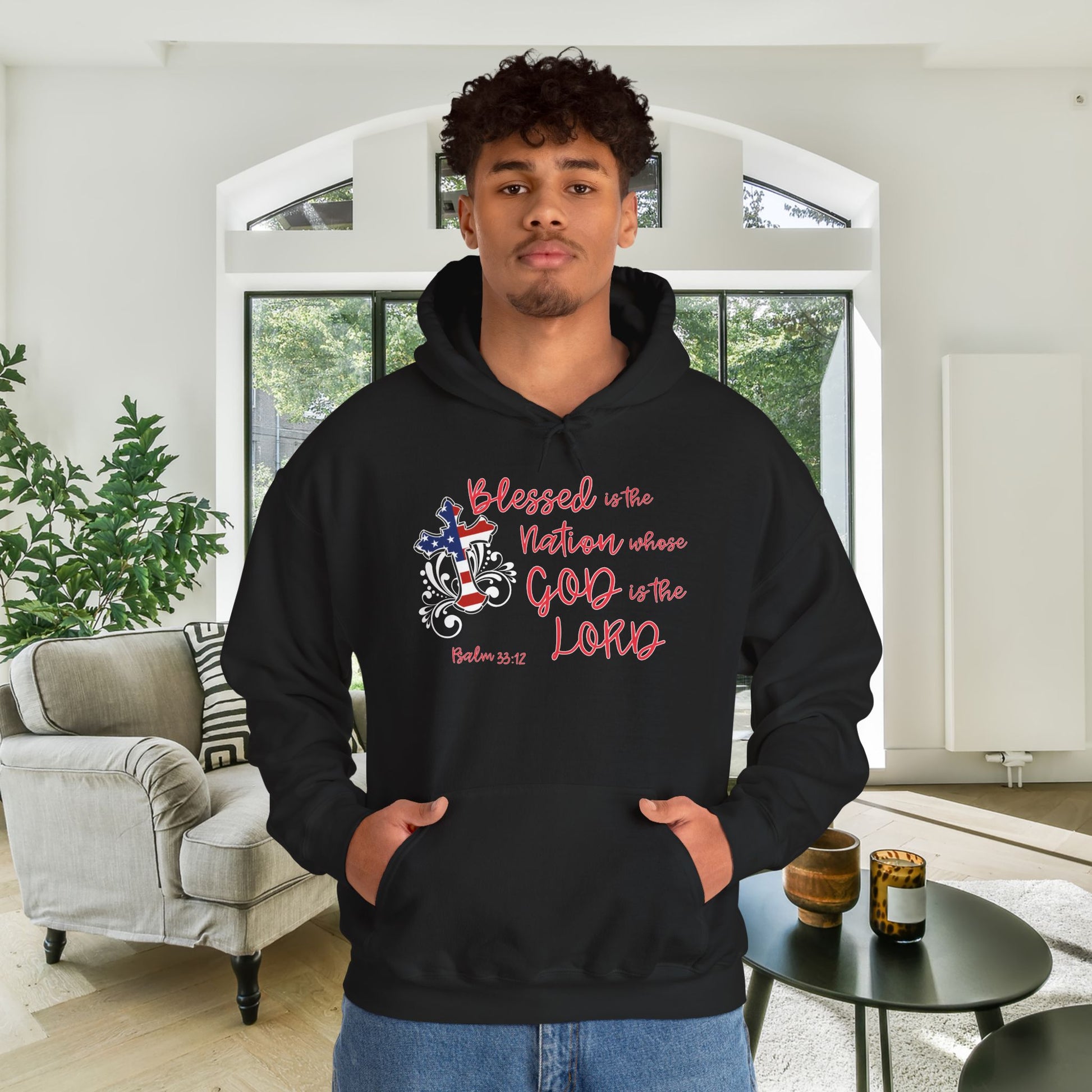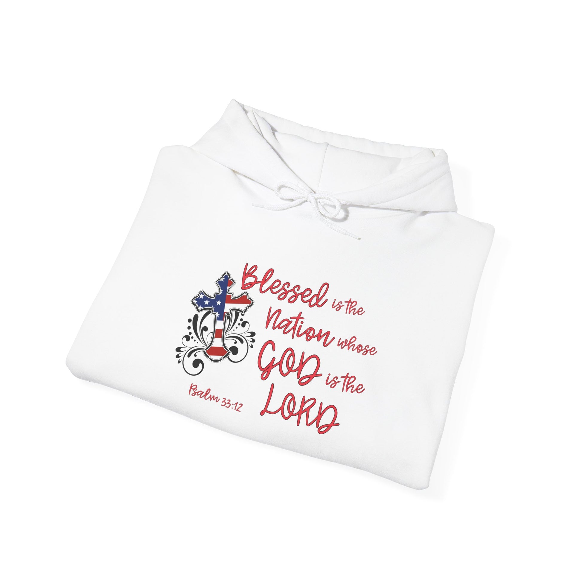 Blessed Is The Nation Whose God Is The Lord Heavy Blend™ Hooded Sweatshirt
