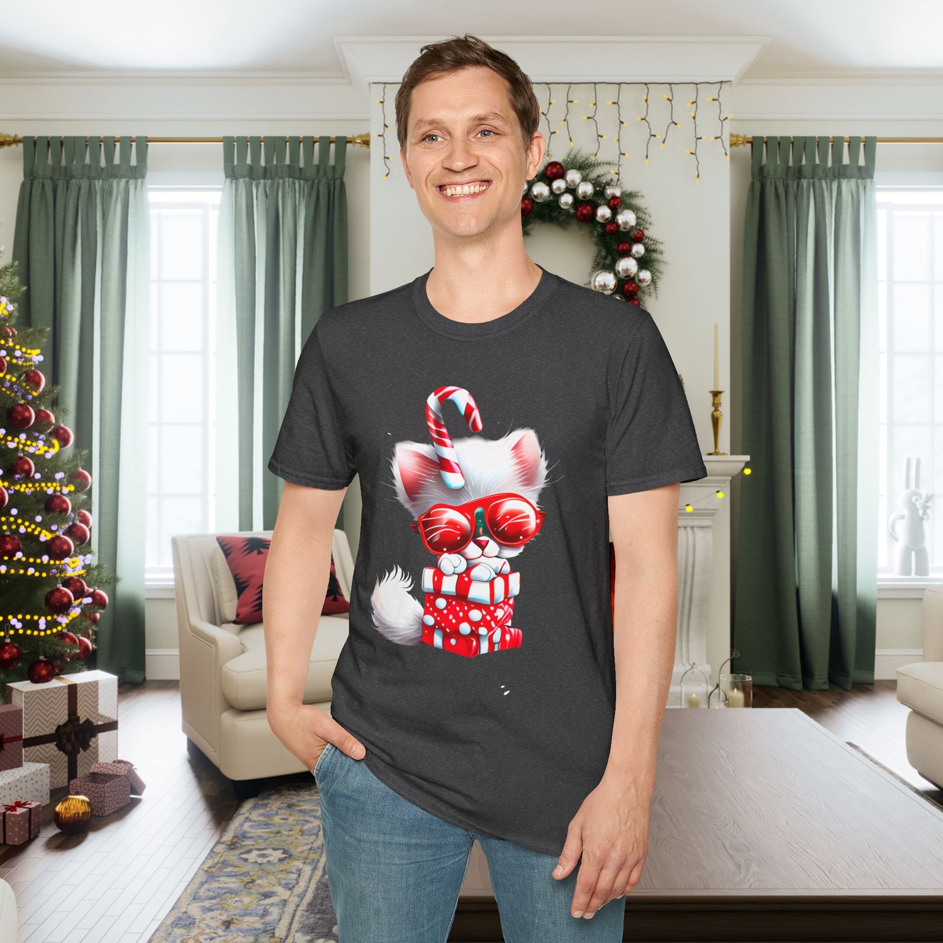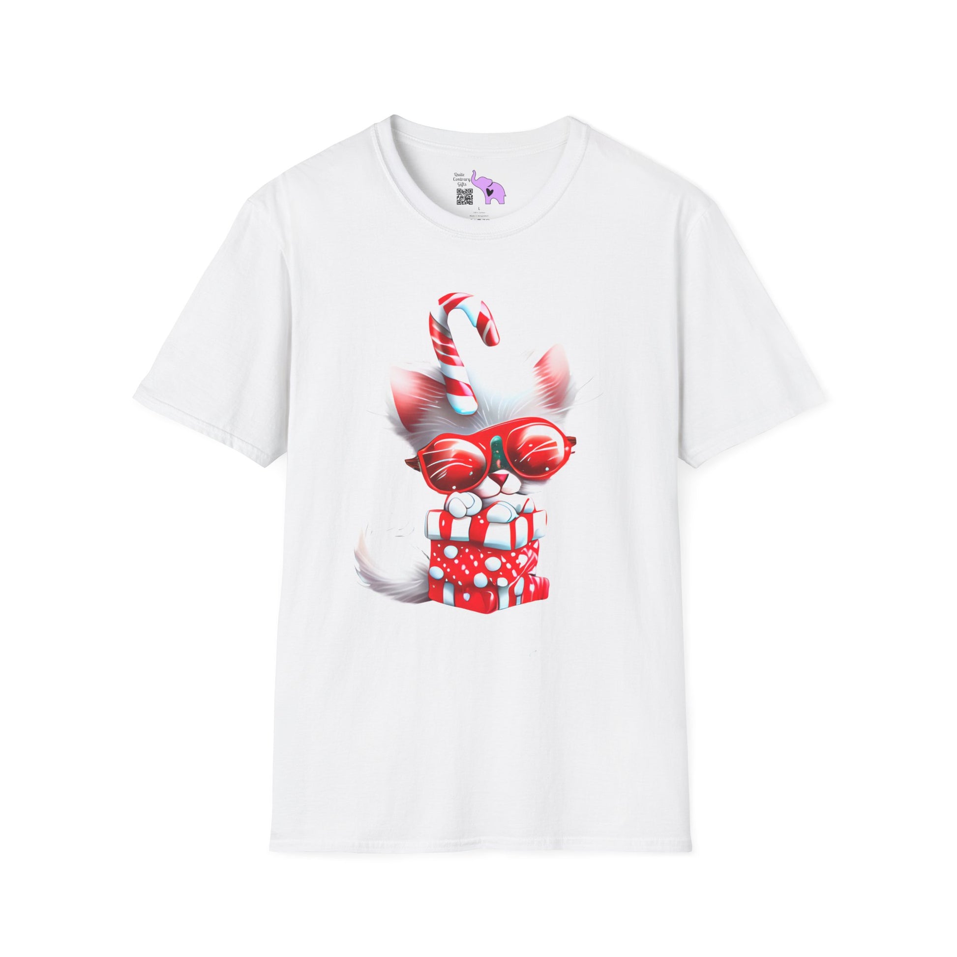 Candy Cane Kitten Adult T-shirt