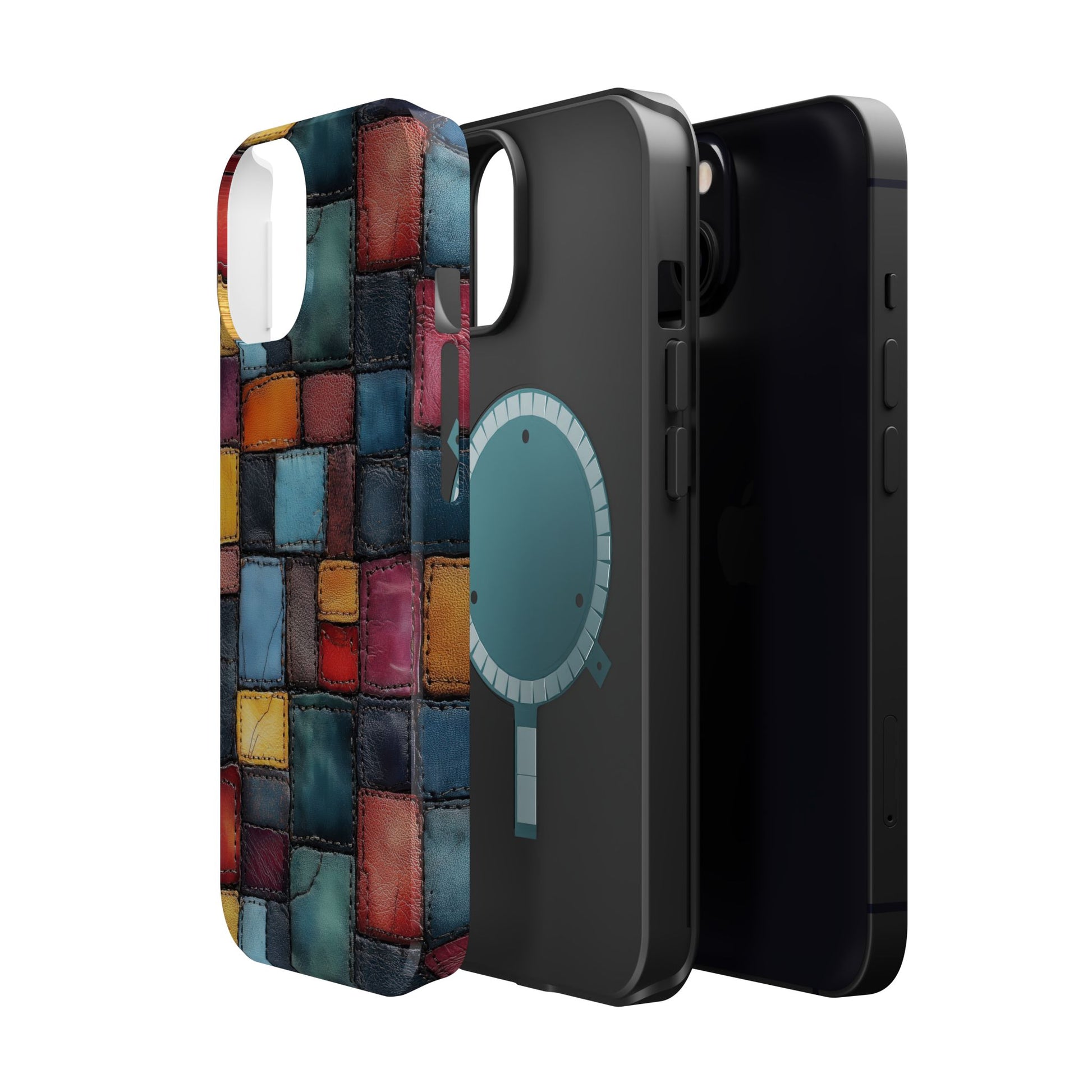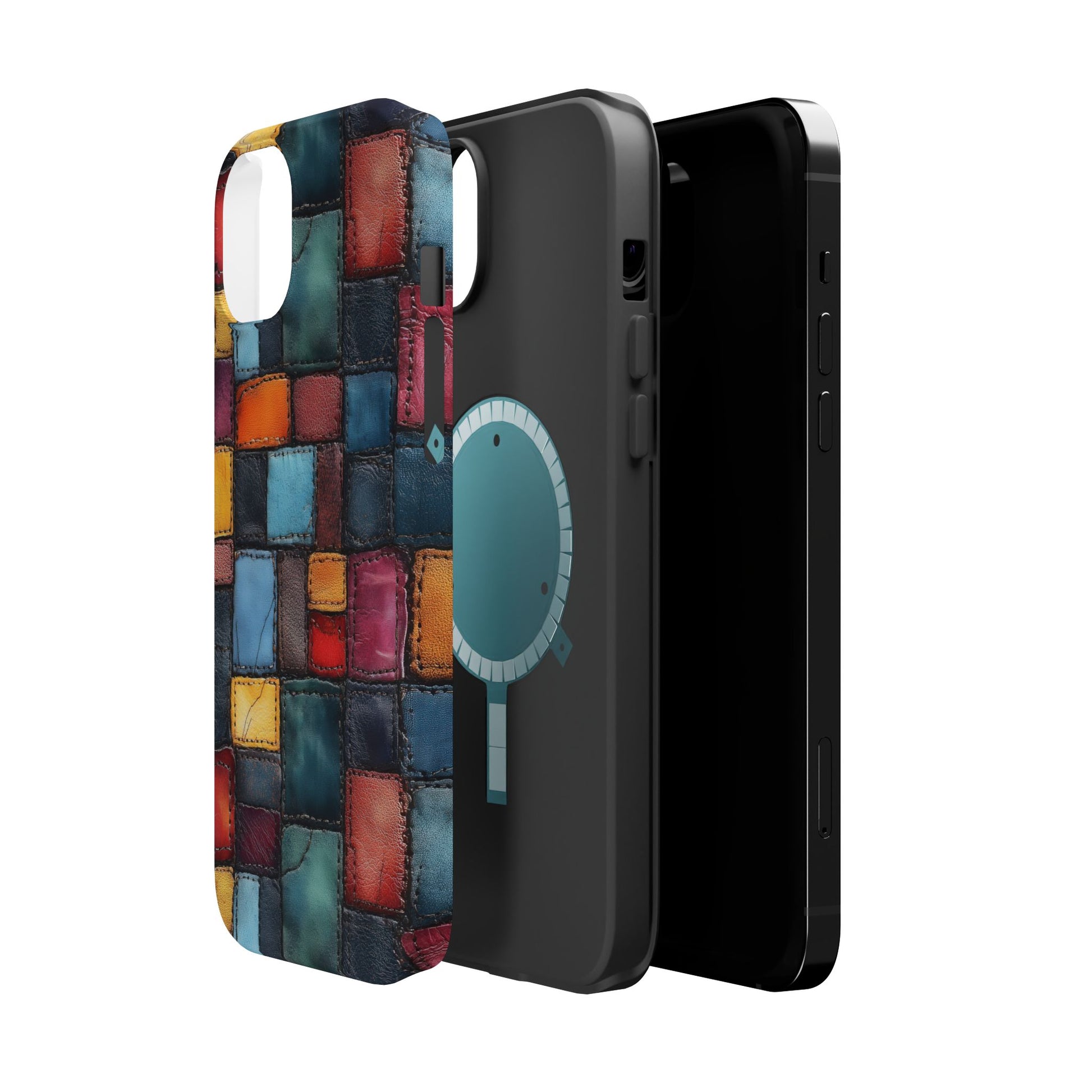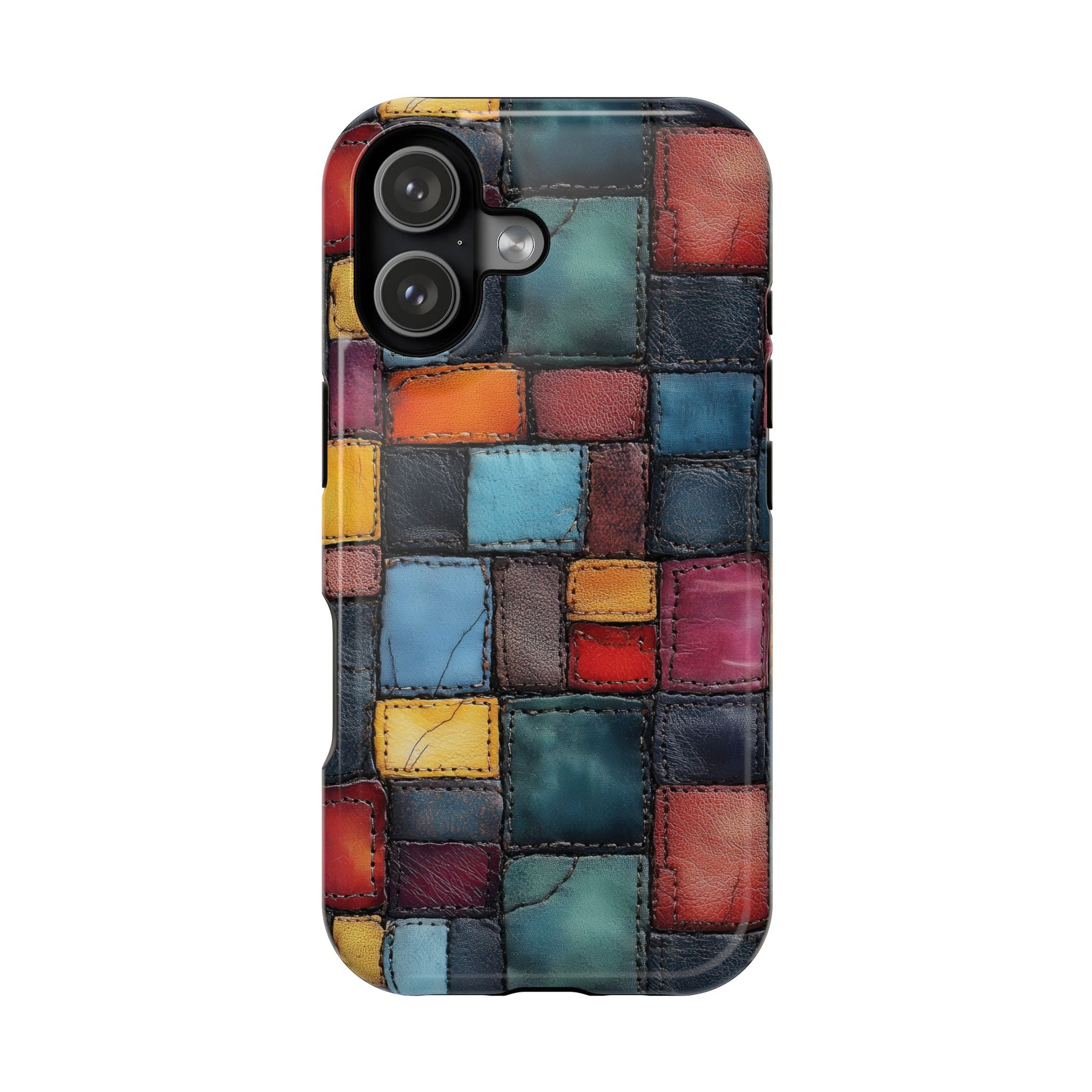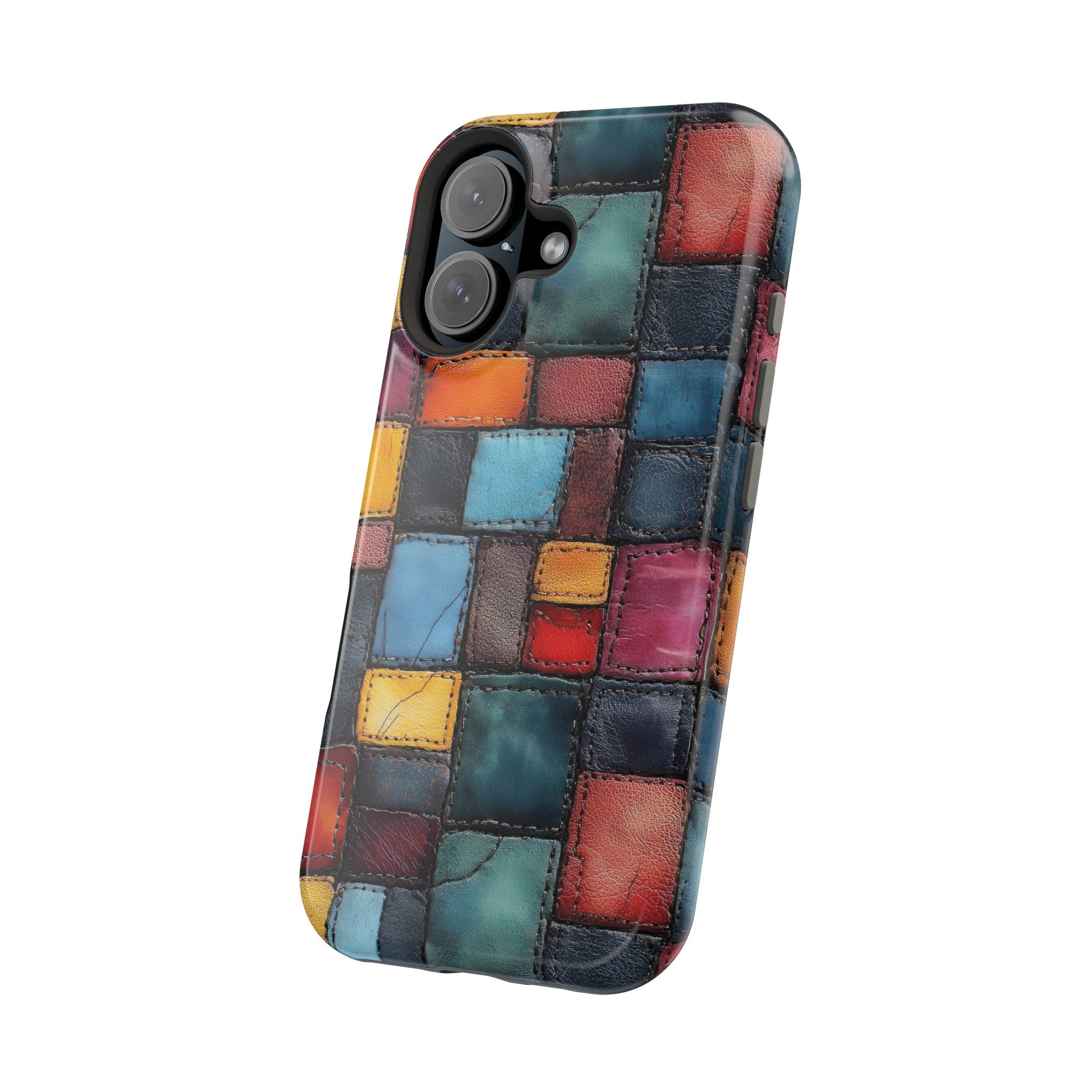 Coloerful Leather Patchwork MagSafe® Compatible Tough Case for iPhone