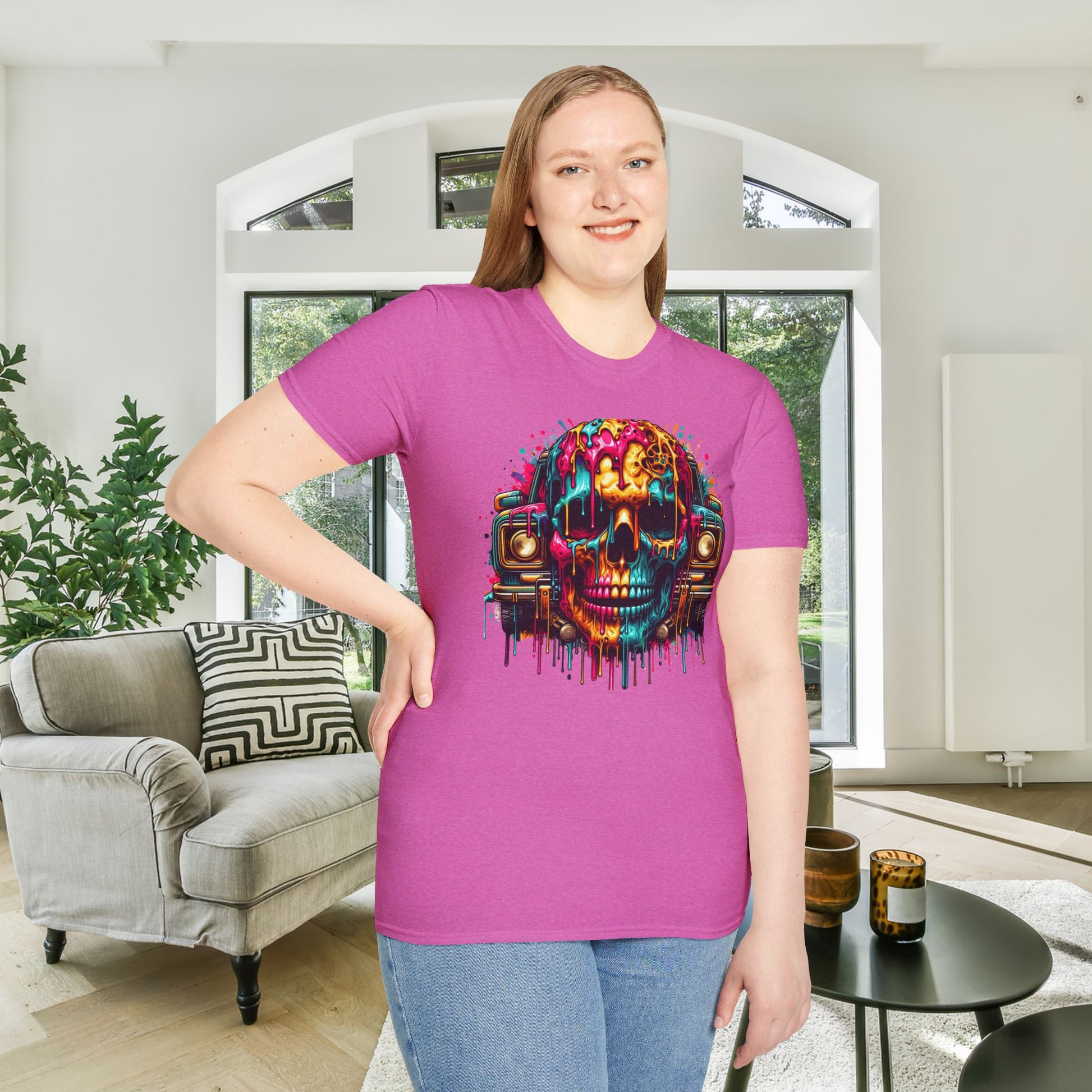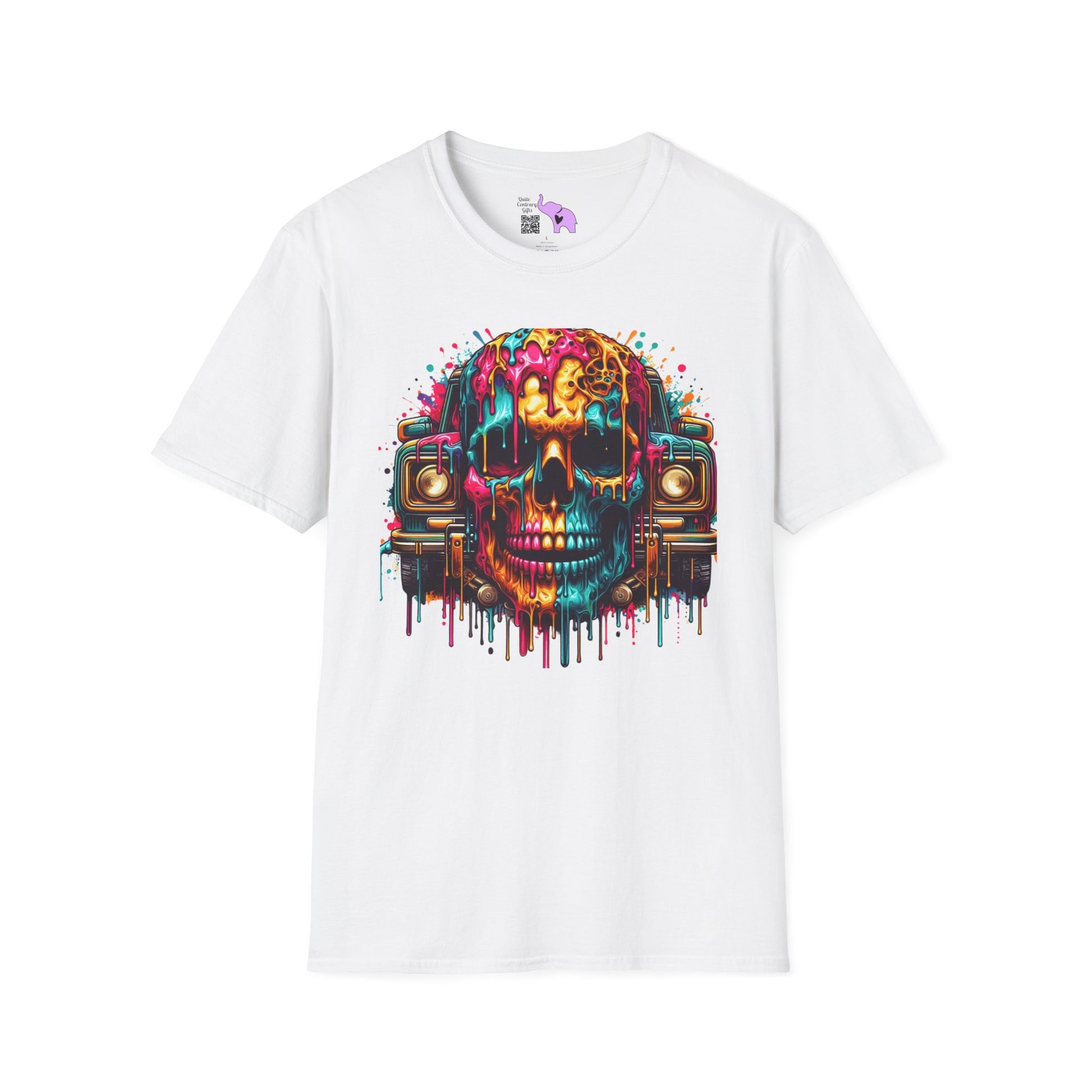 Colorful Skull & Car Adult T-shirt