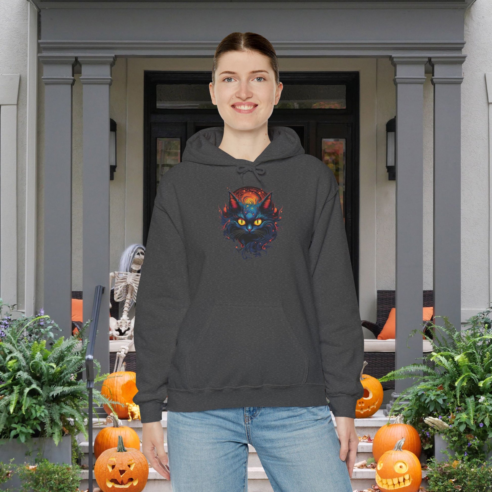 This unisex heavy blend hooded sweatshirt is relaxation itself. Made with a thick blend of cotton and polyester, it feels plush, soft and warm, a perfect choice for any cold day. In the front, the spacious kangaroo pocket adds daily practicality while the hood's drawstring is the same color as the base sweater for extra style points.