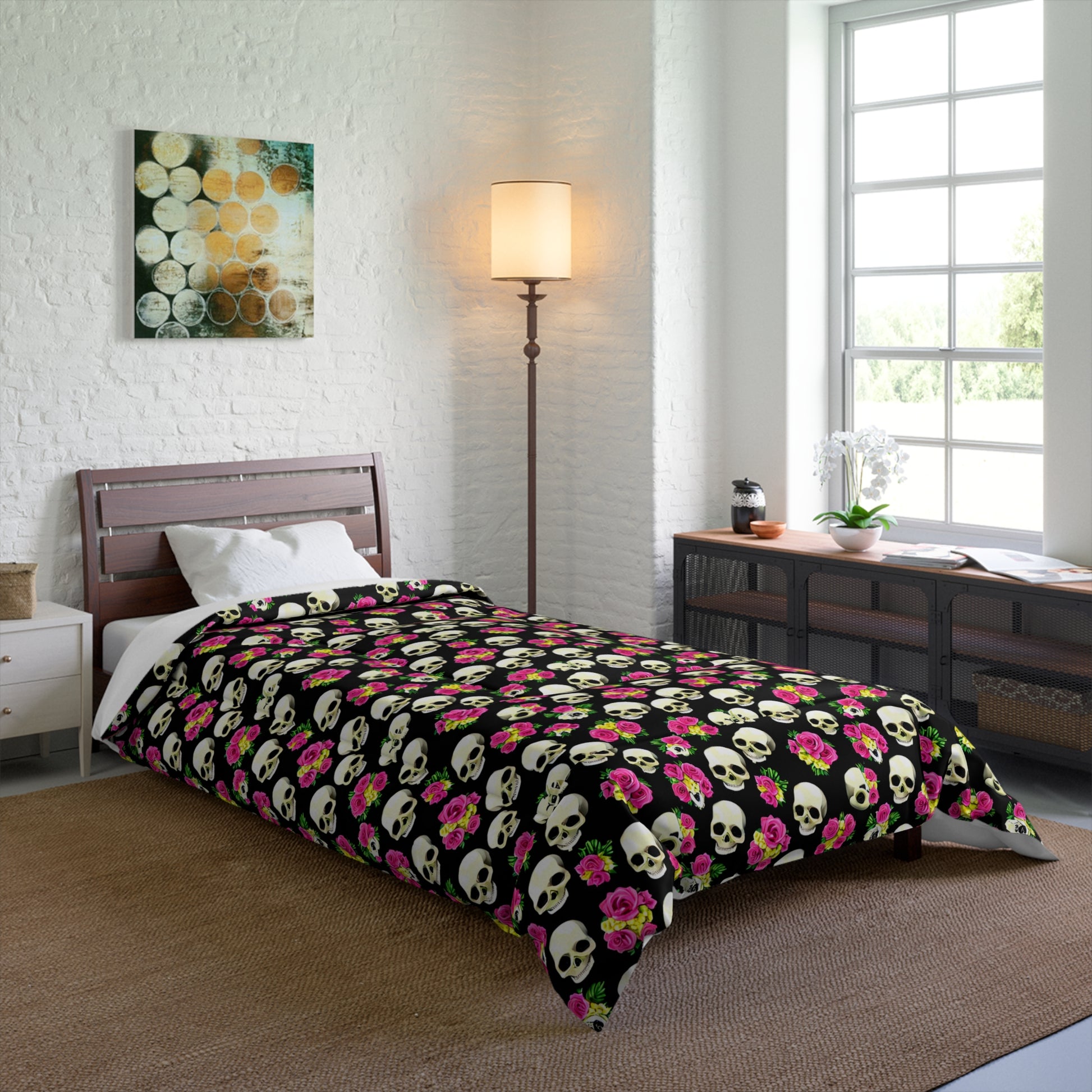 Pink Roses & Skulls Basic Bedding Set