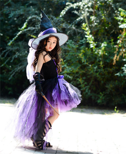 Let your little one cast spells in style with this adorable witch costume! Perfect for Halloween, school events, or dress-up play, this enchanting outfit includes a skirt, magic hat, gloves, flower necklace, and matching shoes. Whether they're brewing potions or flying on a broom, they'll be the cutest witch on the block!