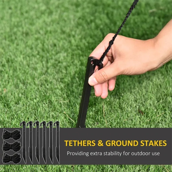 Stable Setup: Includes 6 ground stakes, 3 tethers, and a built-in blower to keep it secure.