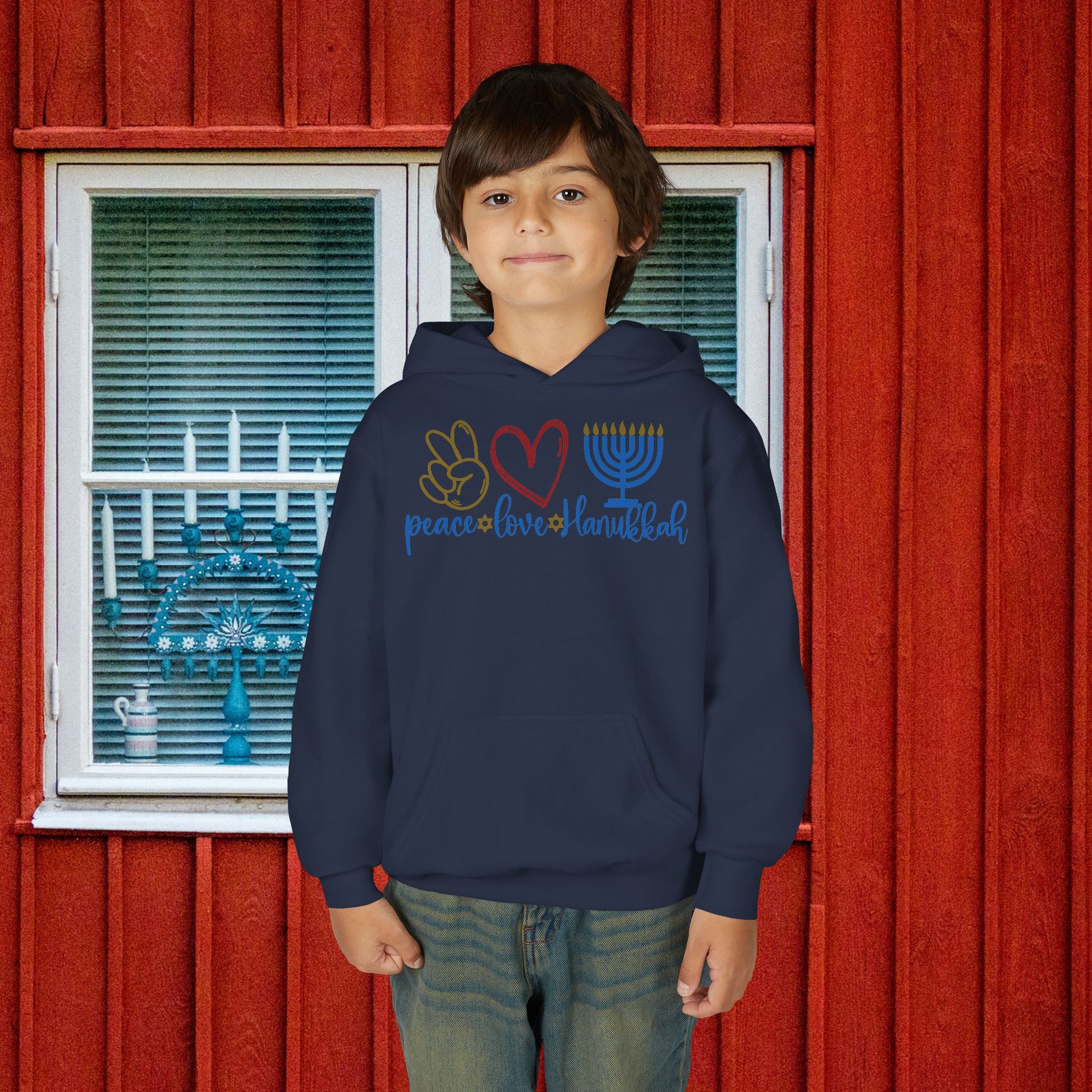 Peace Love Hanukkah Youth Heavy Blend Hoodie