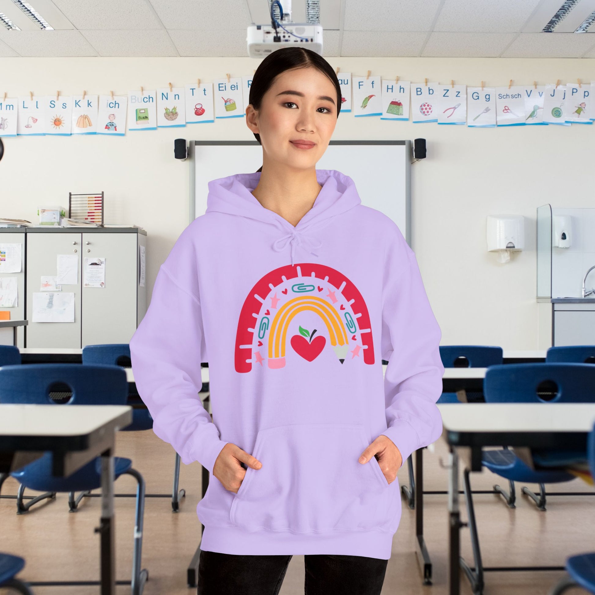 This unisex heavy blend hooded sweatshirt is relaxation itself. Made with a thick blend of cotton and polyester, it feels plush, soft and warm, a perfect choice for any cold day. In the front, the spacious kangaroo pocket adds daily practicality while the hood's drawstring is the same color as the base sweater for extra style points.