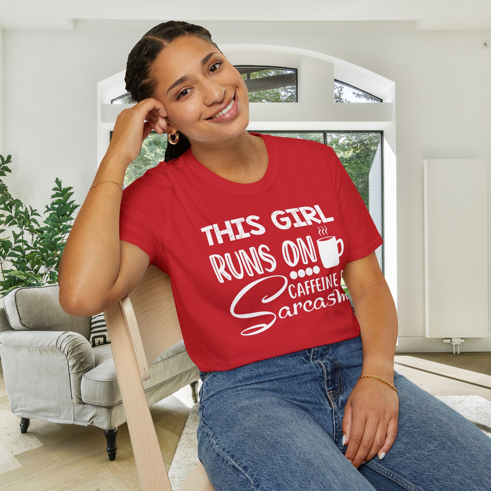 This Girl Runs On Coffee And Sarcasm Adult T-shirt