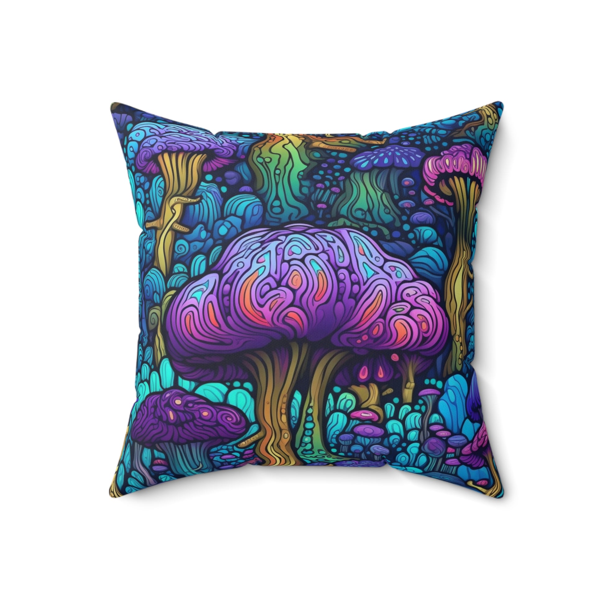 Trippy Purple Mushrooms Throw Pillow