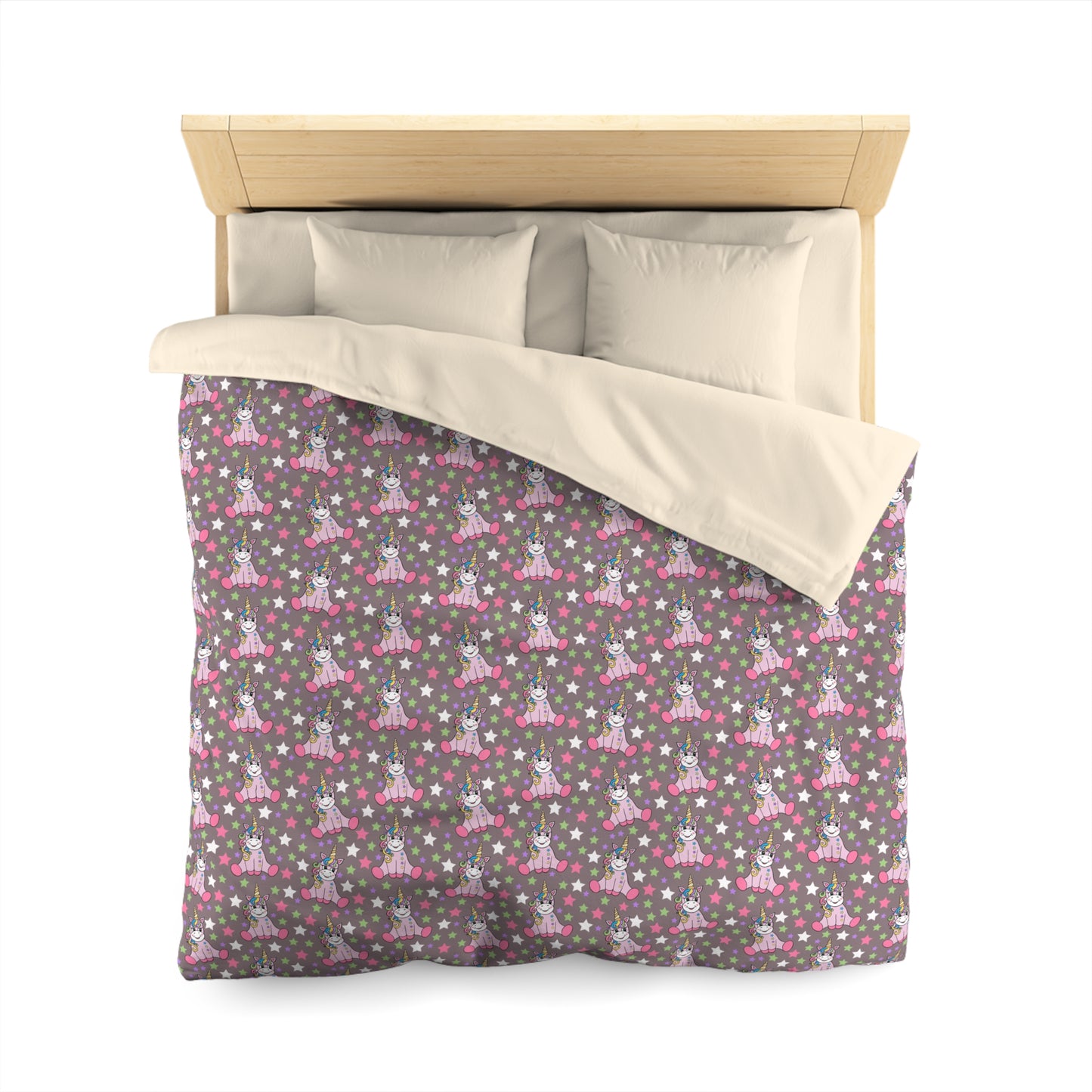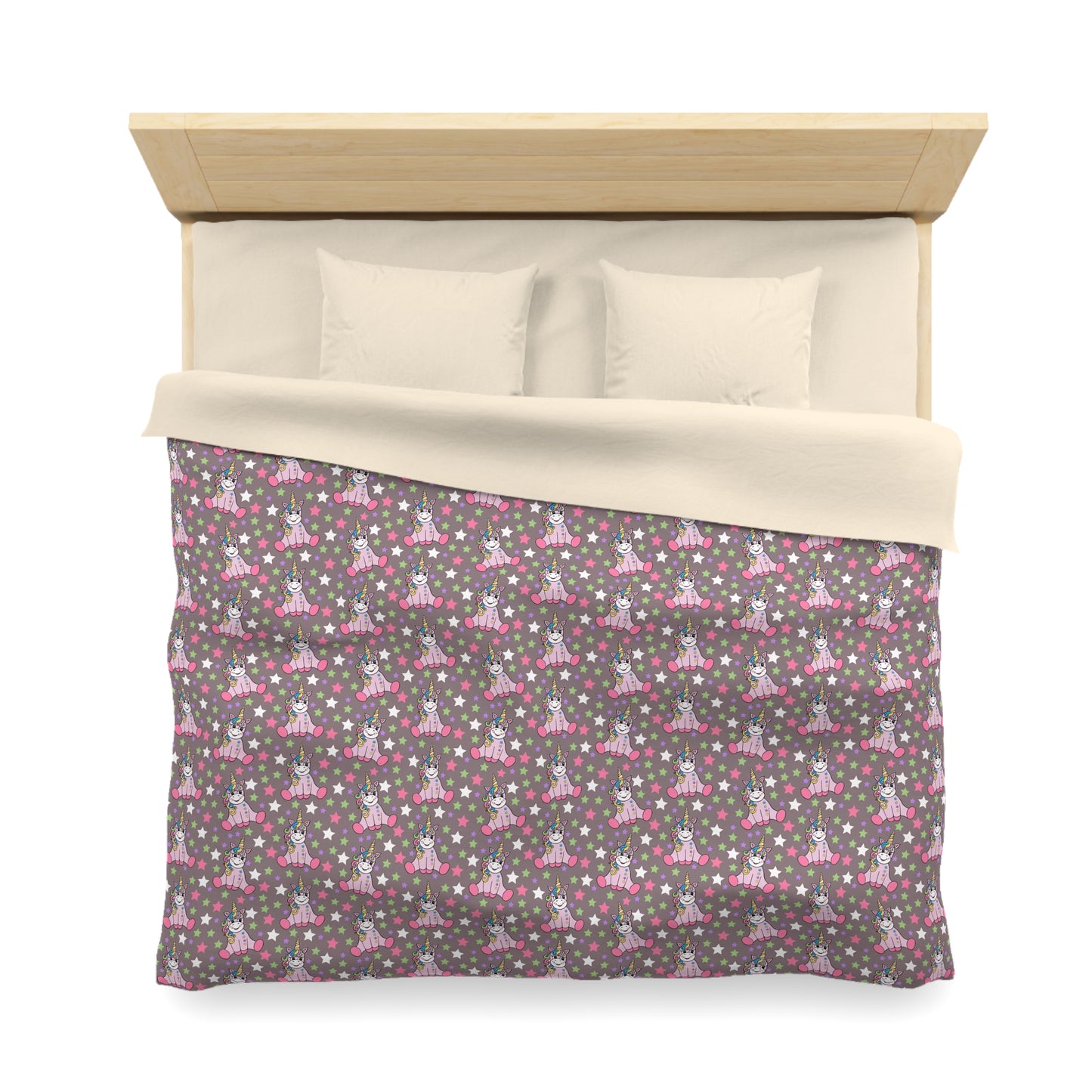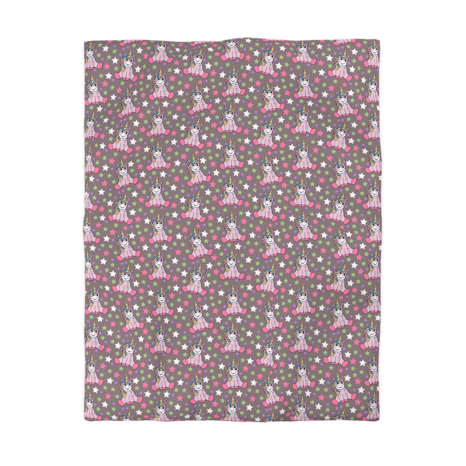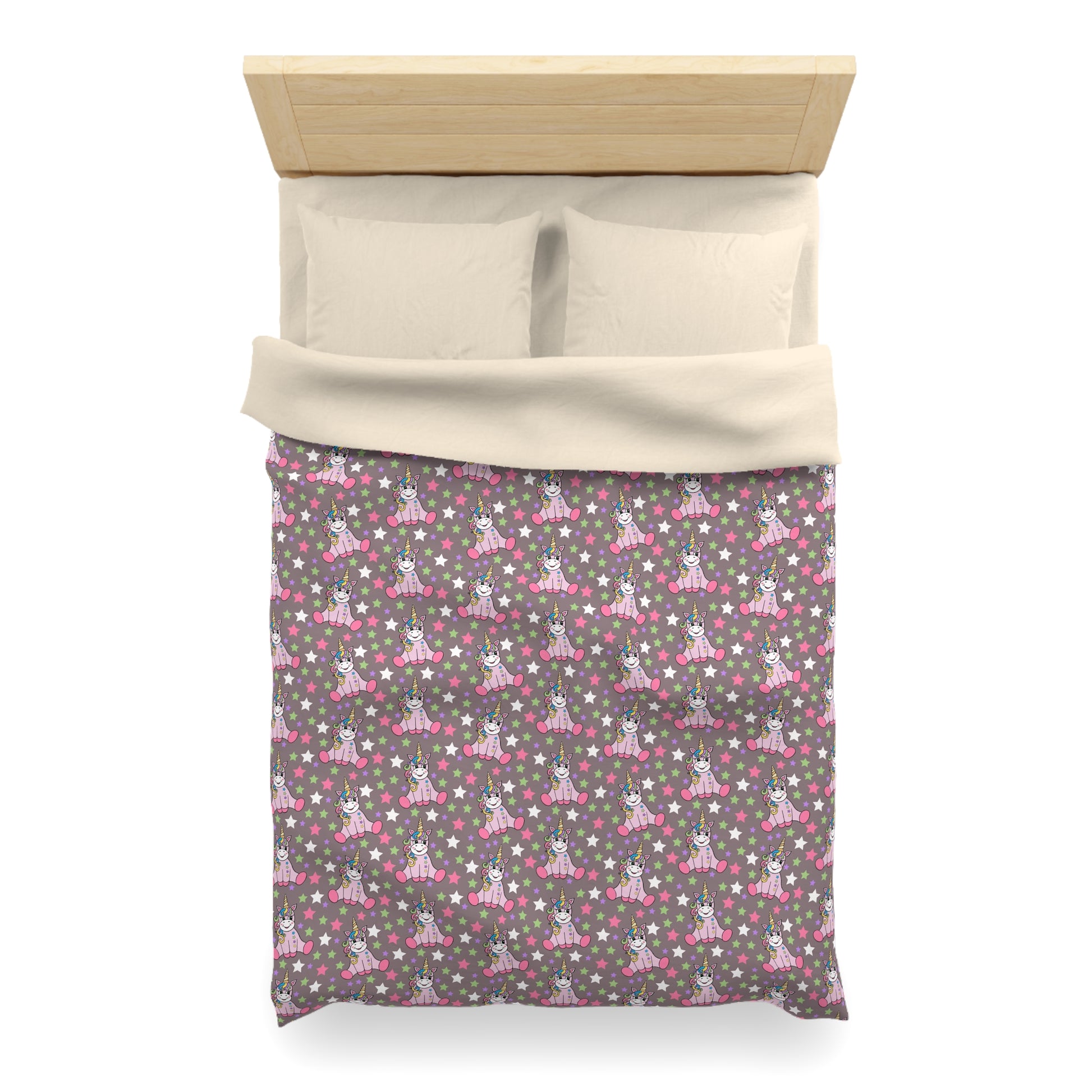 Unicorns on Brown Microfiber Duvet Cover