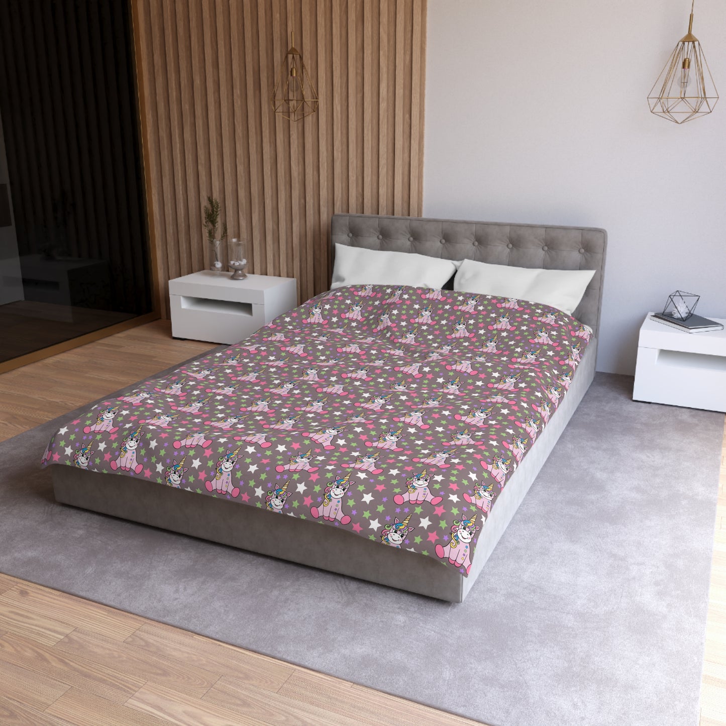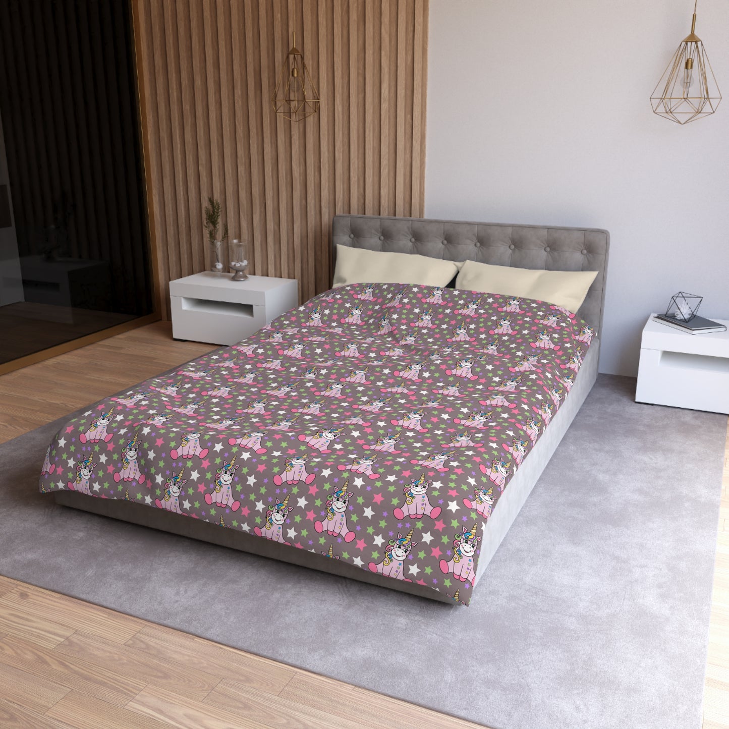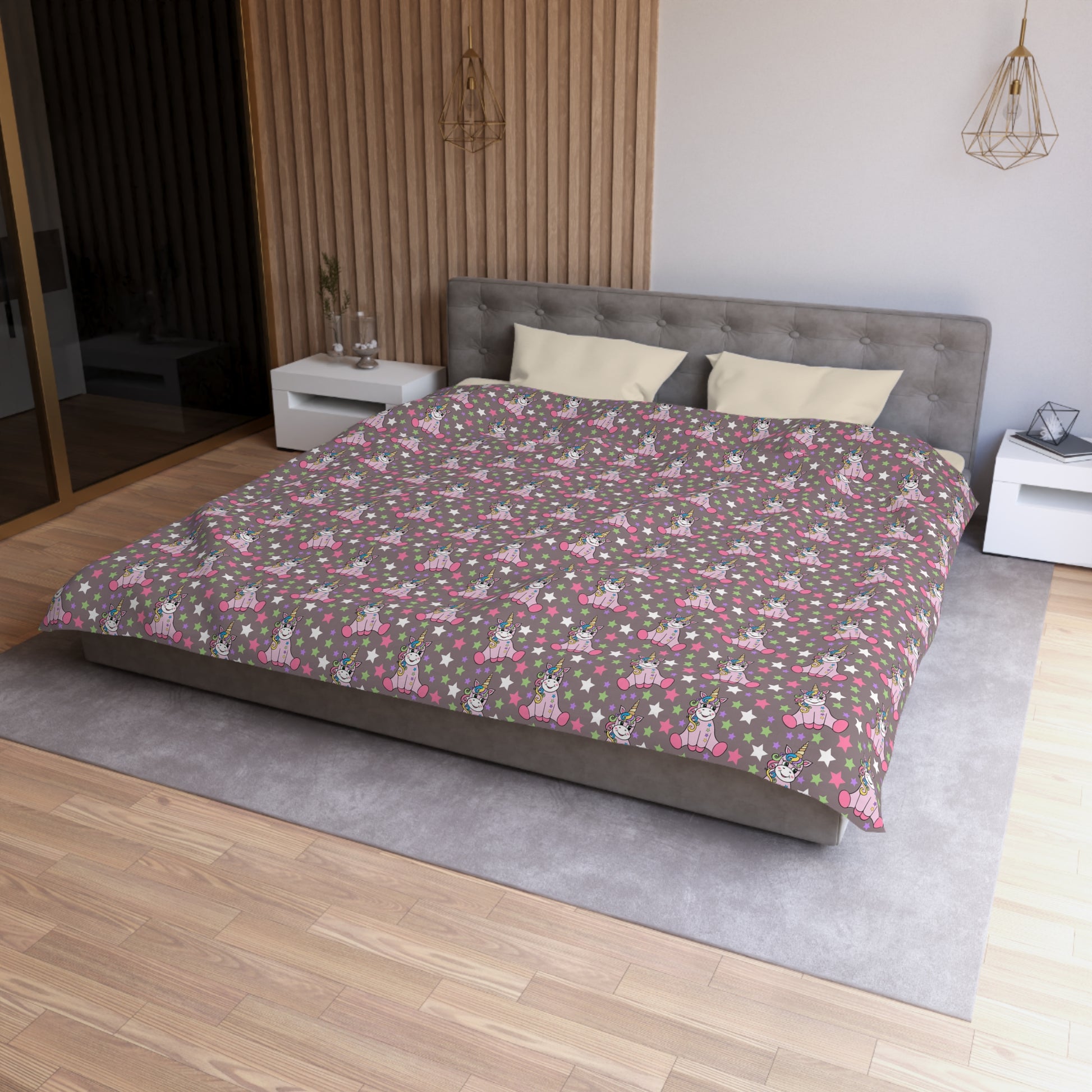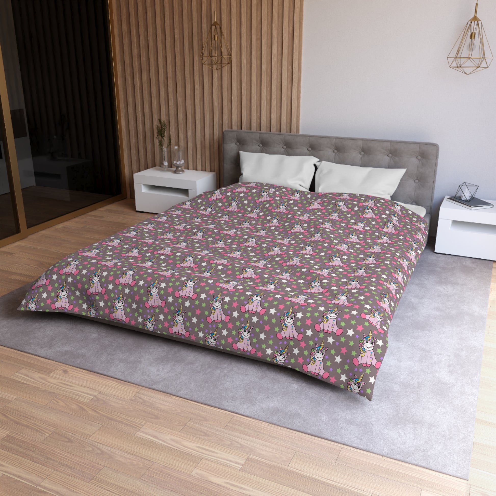 Unicorns on Brown Microfiber Duvet Cover