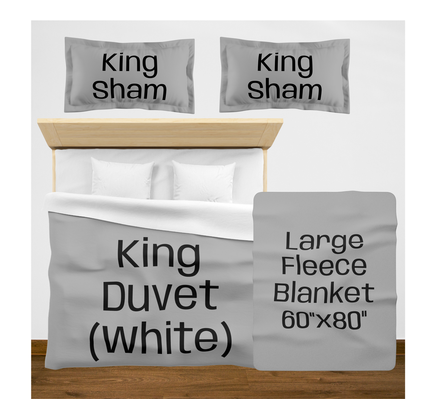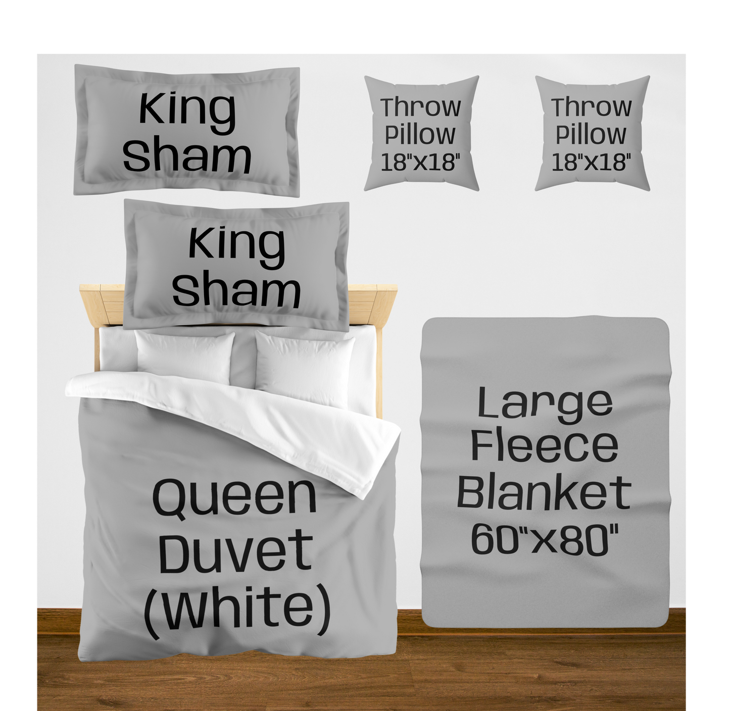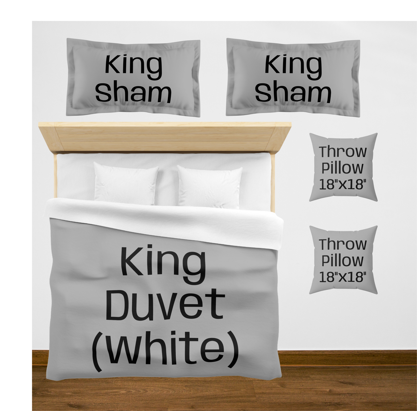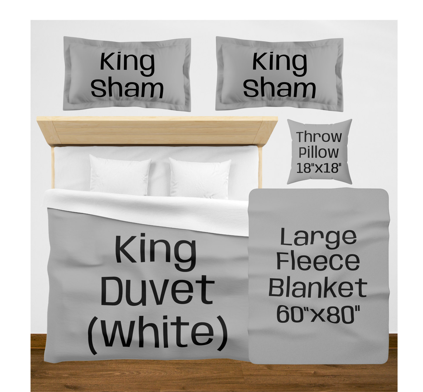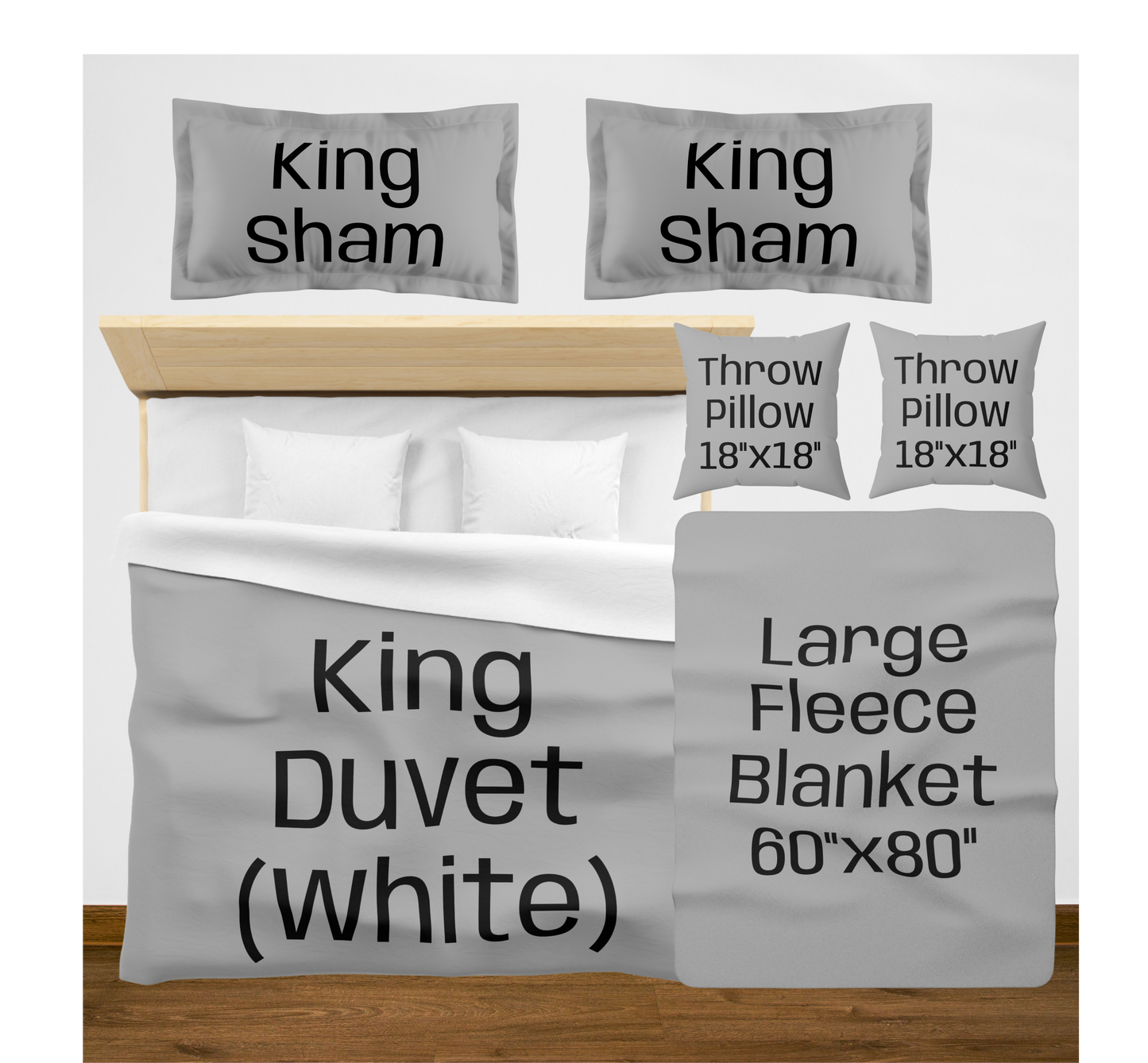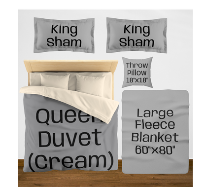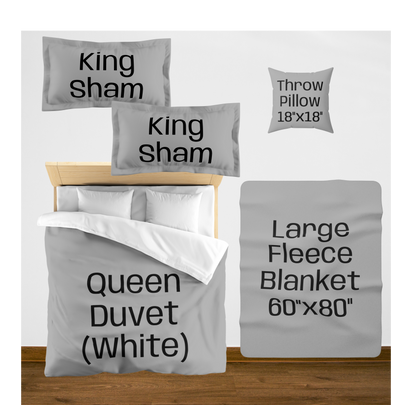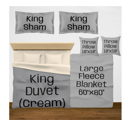 King (White back) w/2 King Shams / Large (60"x80") / 2 Throw Pillows08976867890756