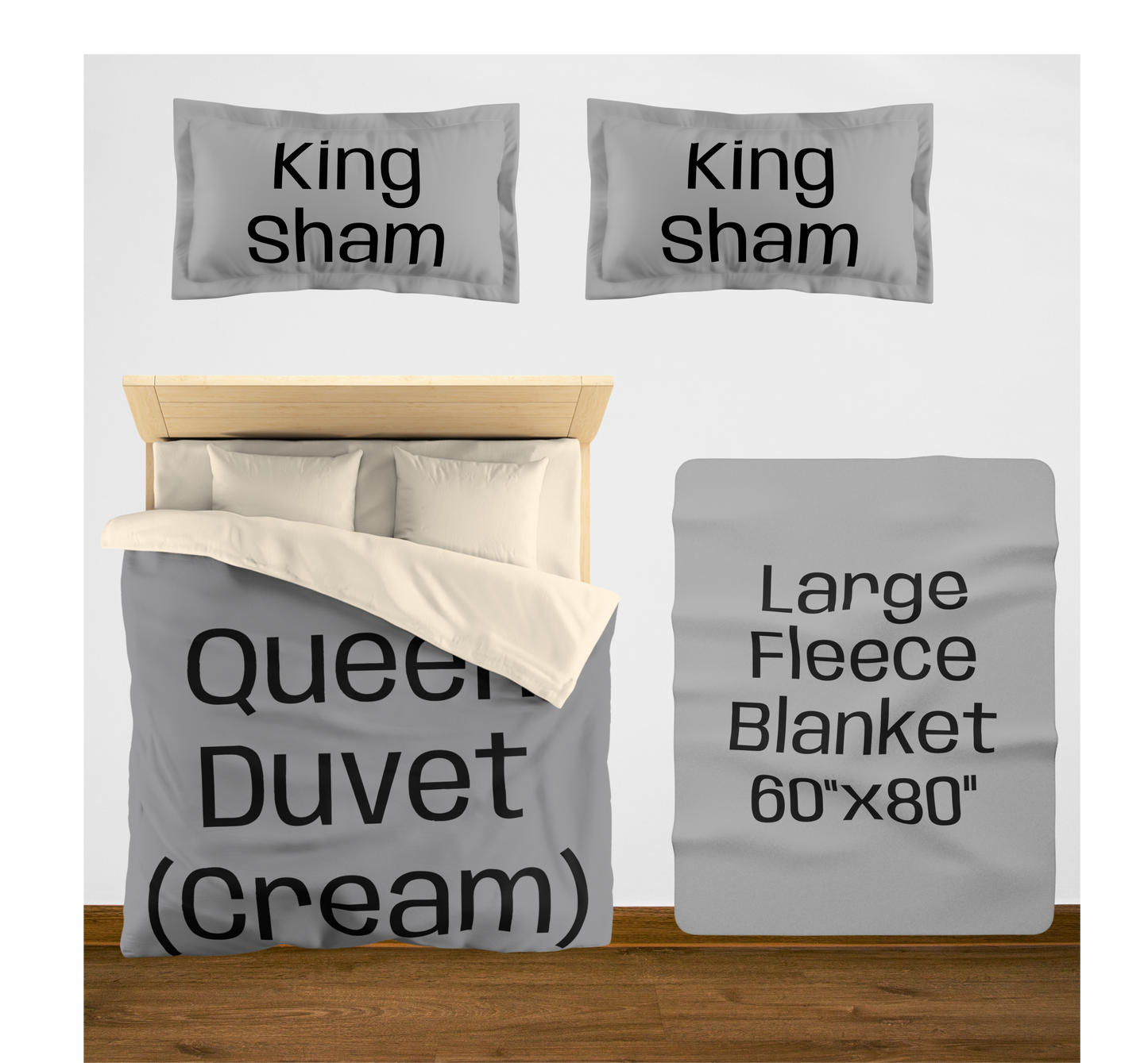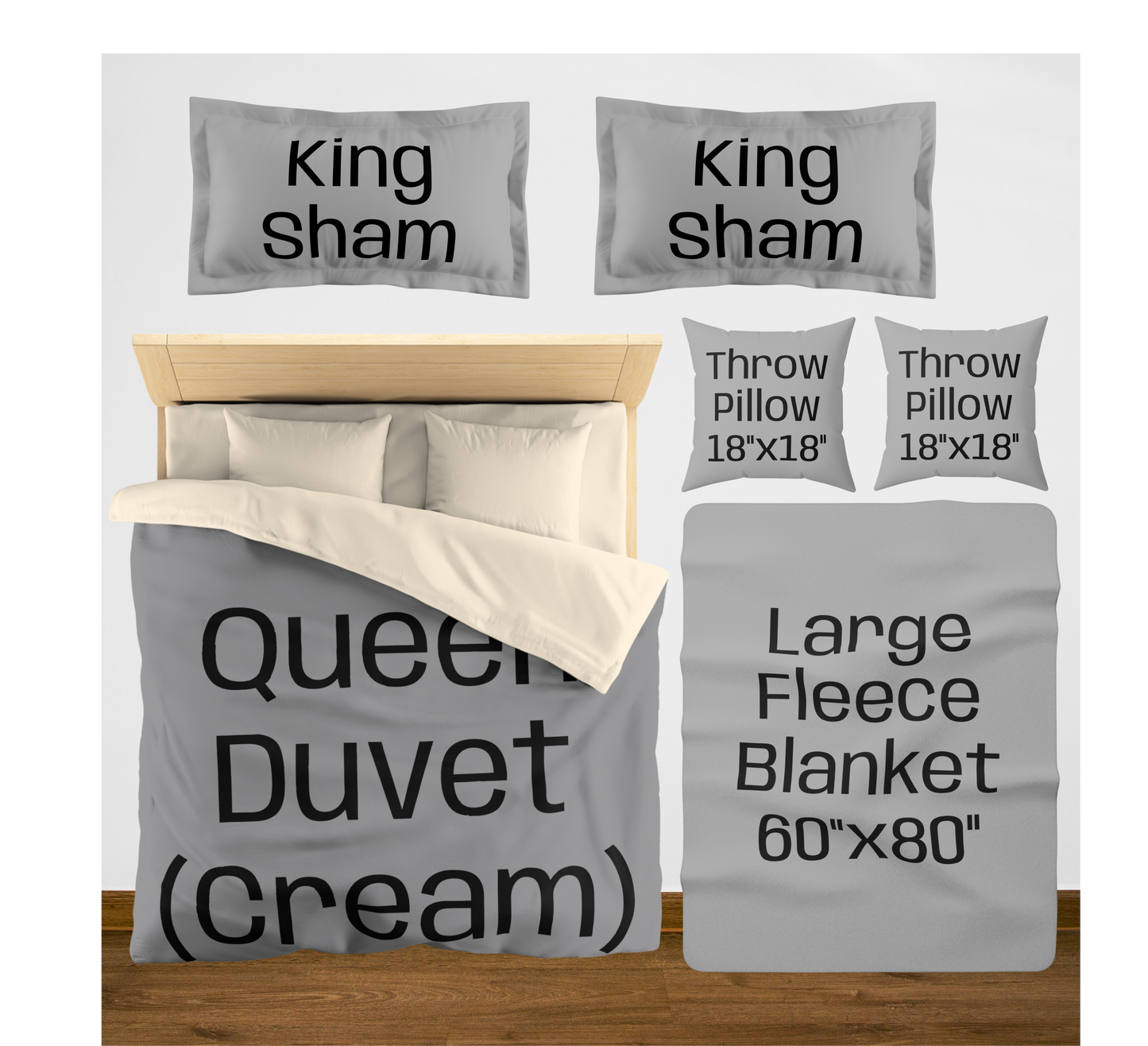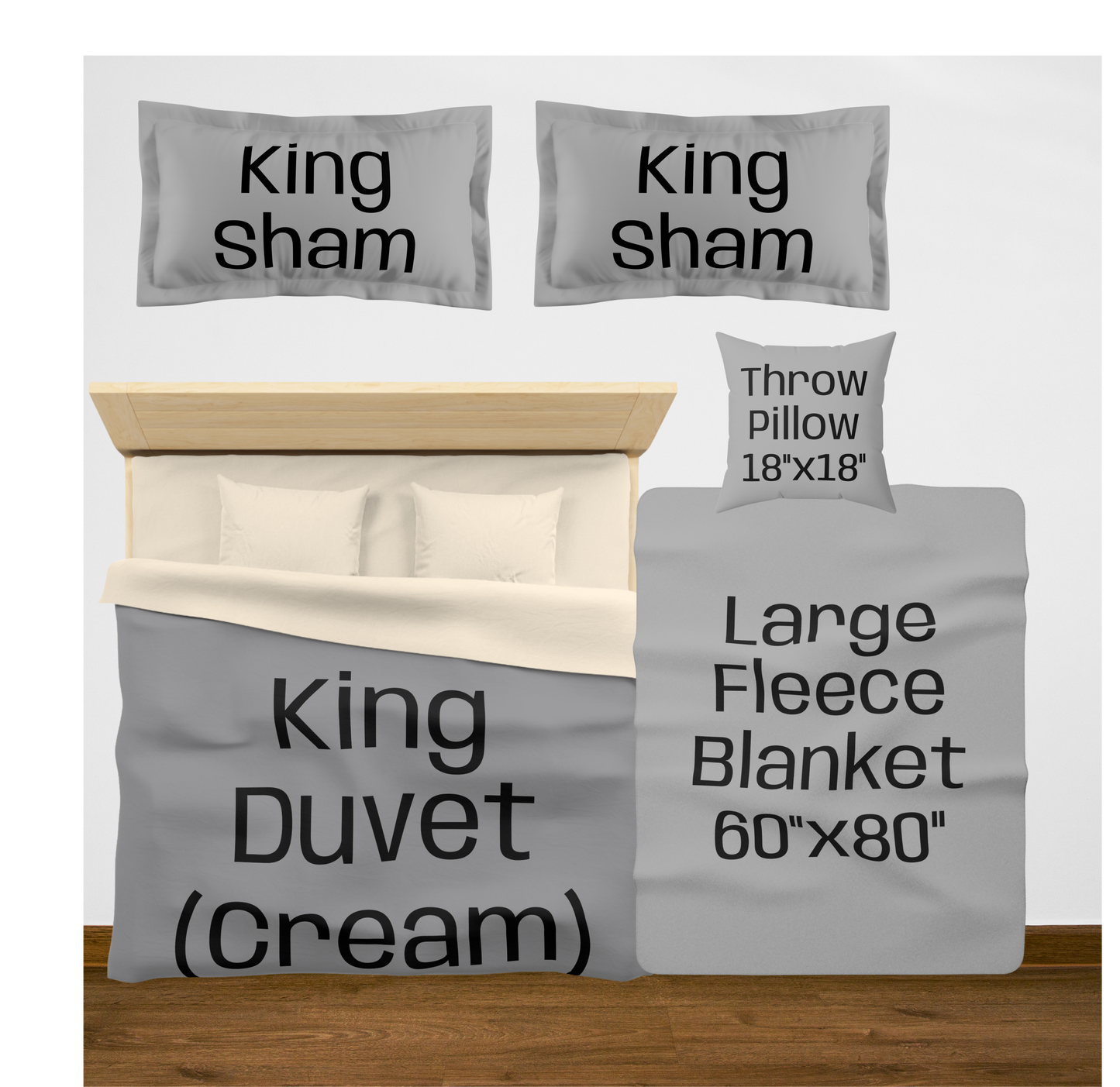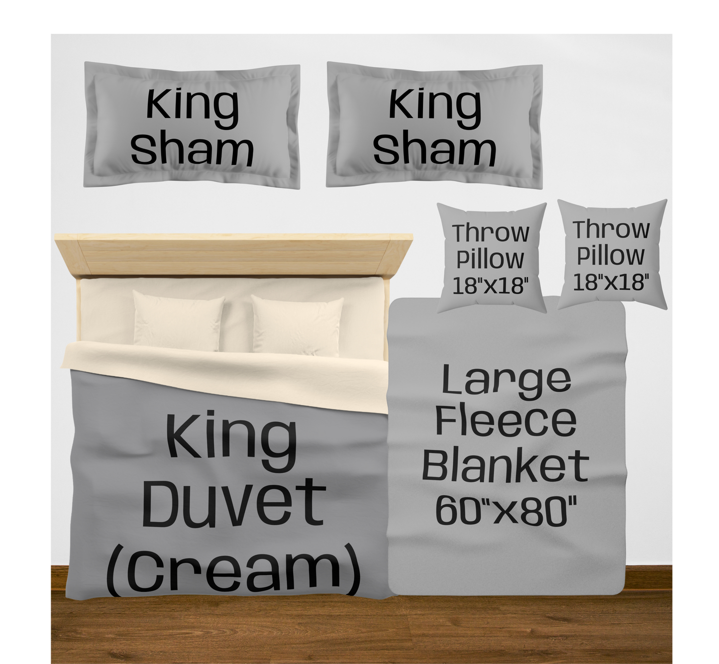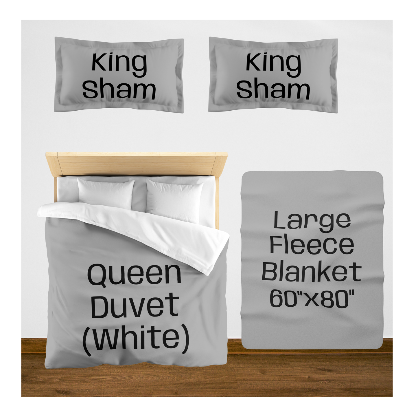 King (White back) w/2 King Shams / Large (60"x80") / 2 Throw Pillows08976867890756