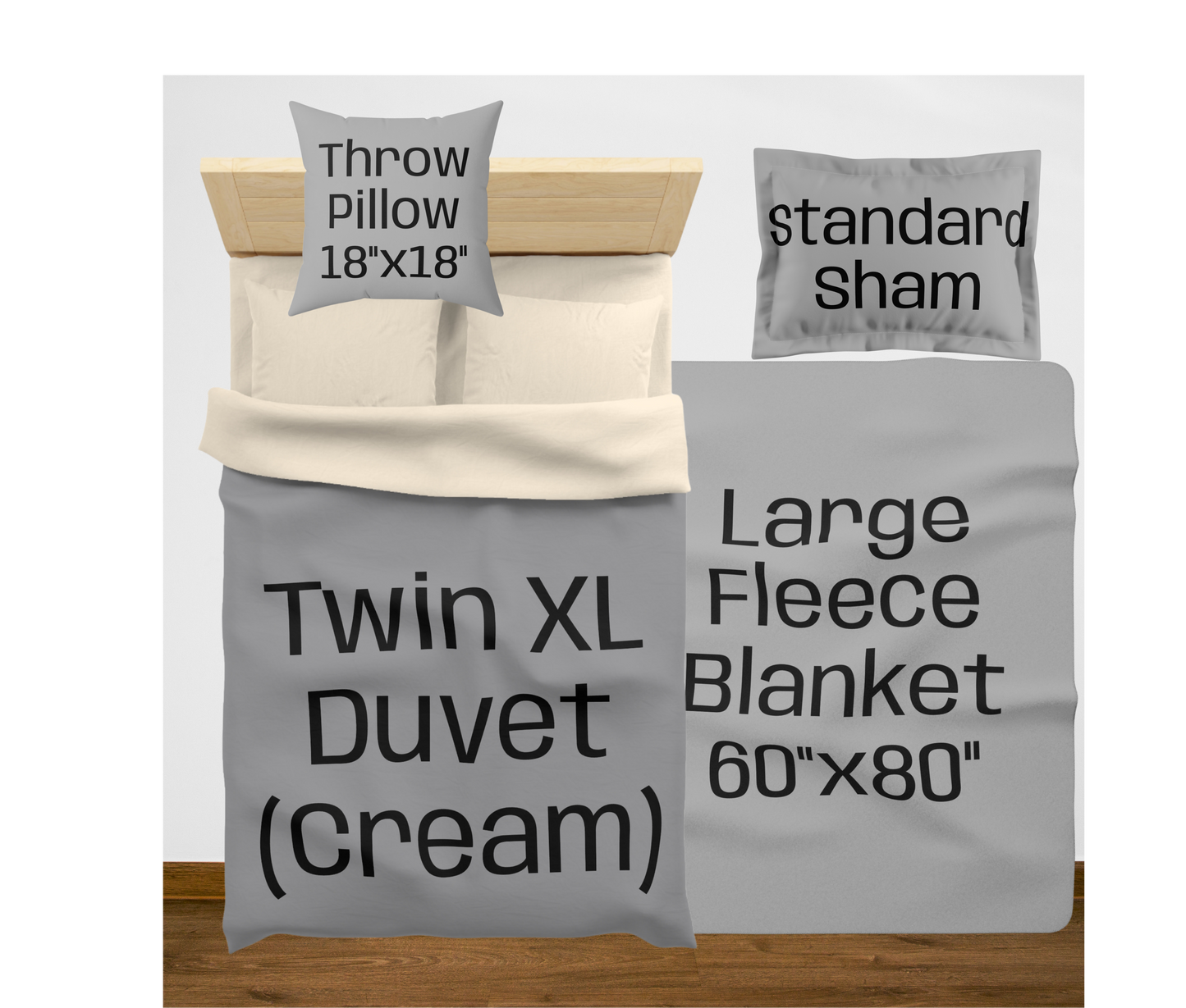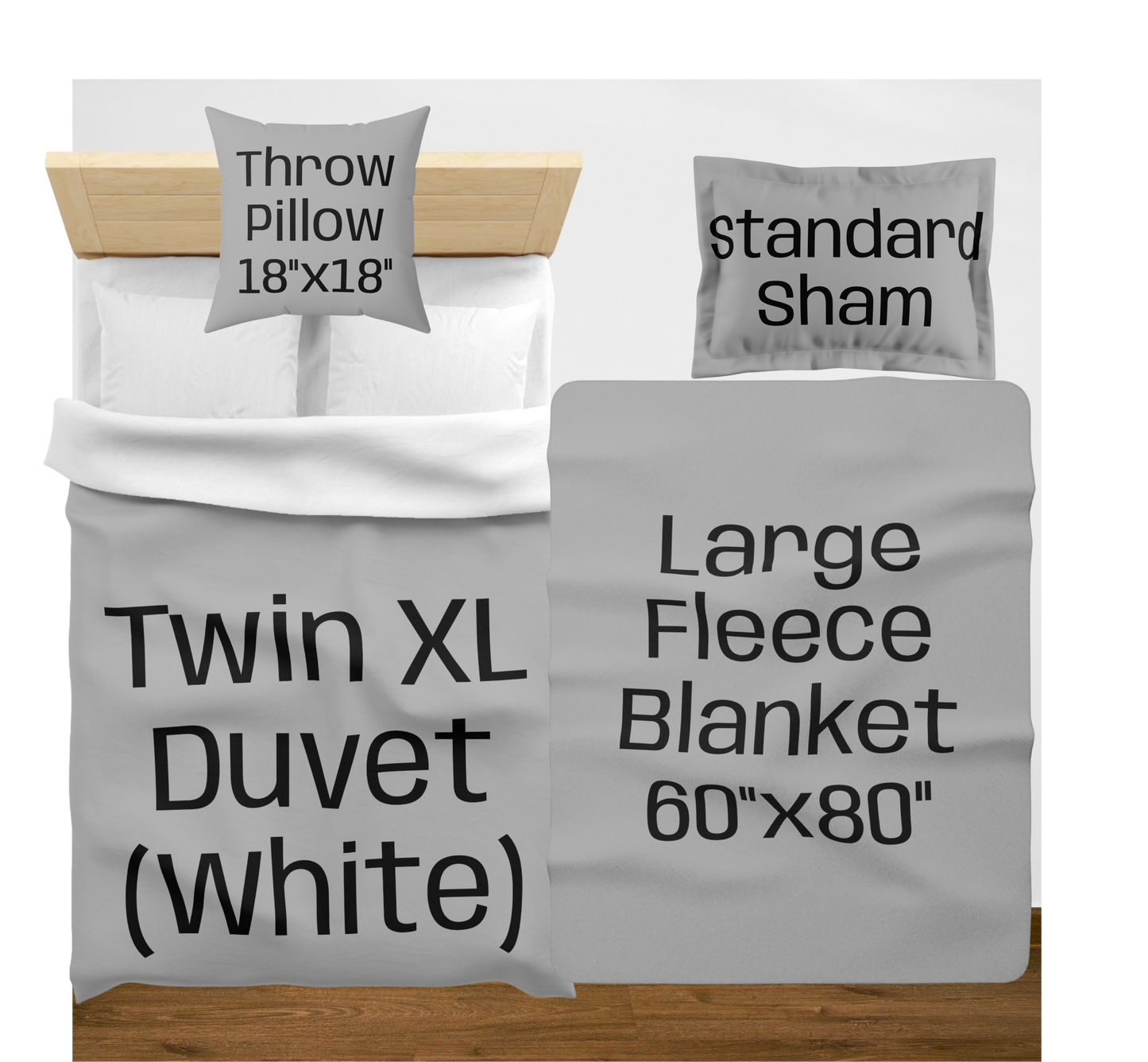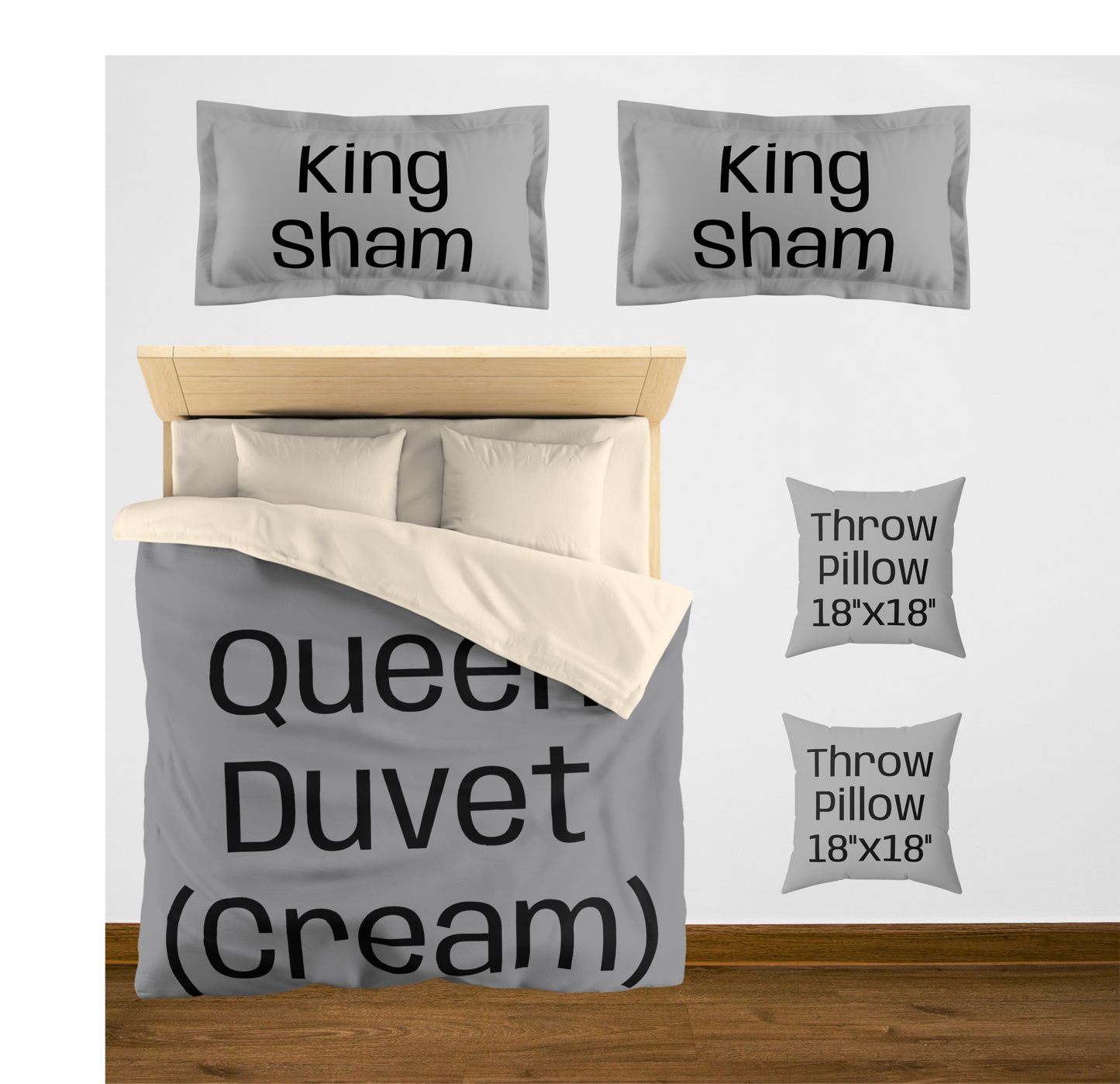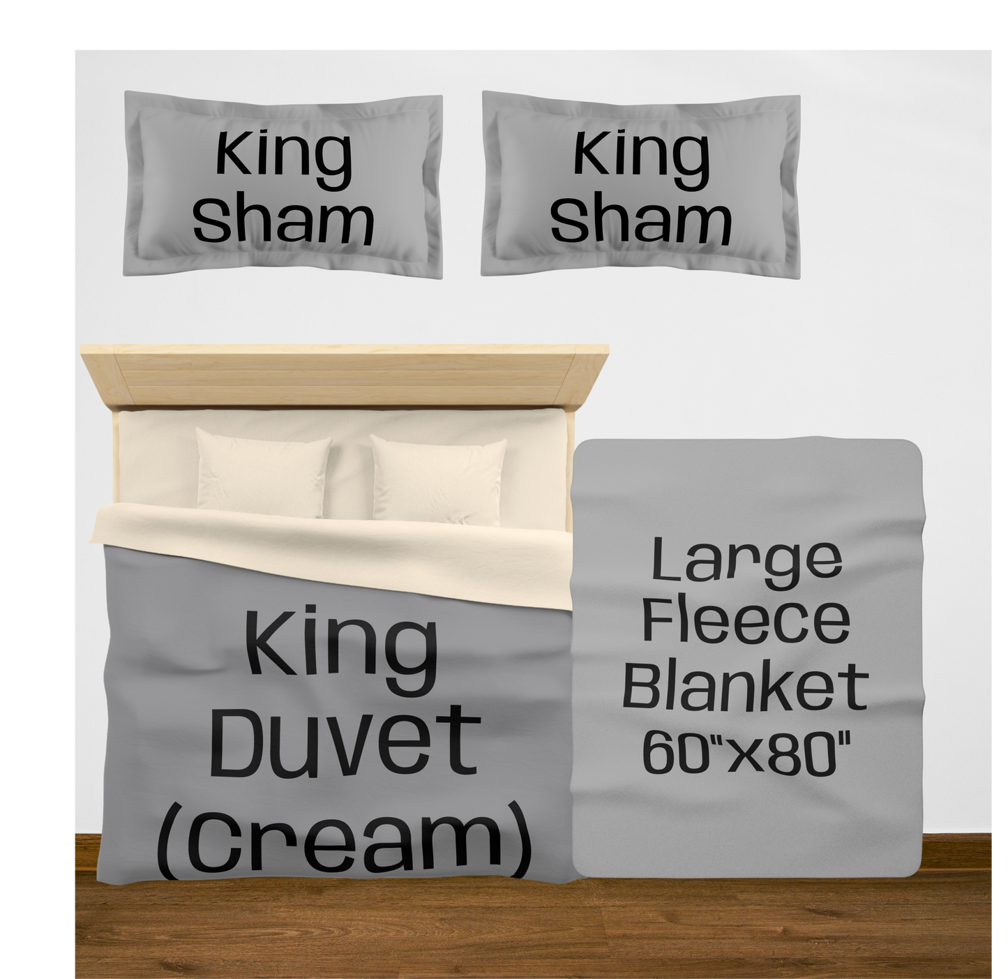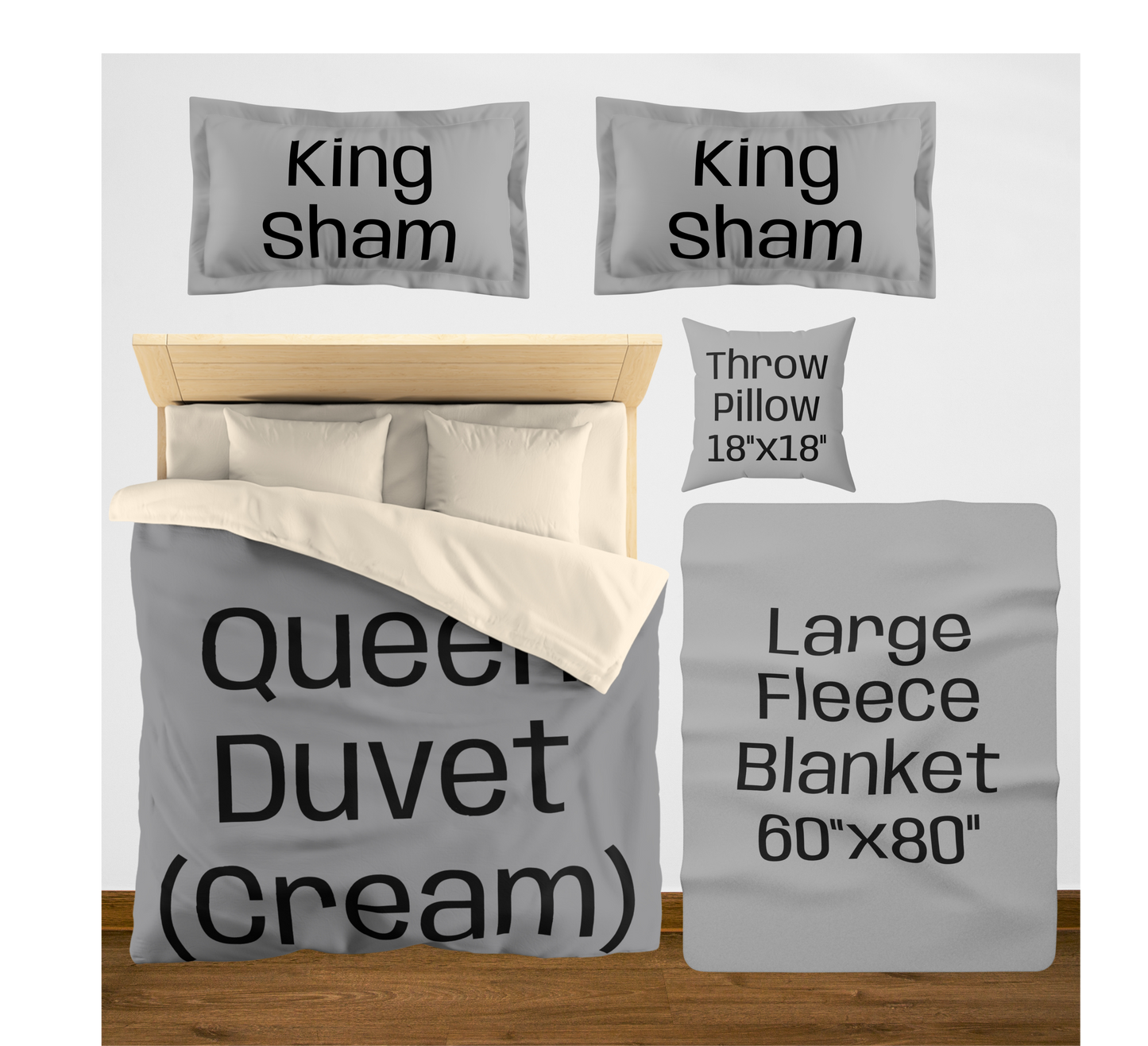 King (White back) w/2 King Shams / Large (60"x80") / 2 Throw Pillows08976867890756