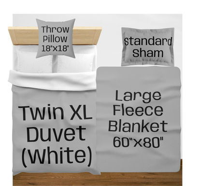 Extras: Your choice of None, Fleece Throw (Small or Large), 18" Throw Pillow