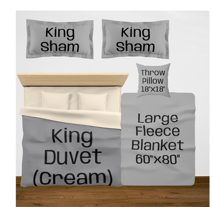 King (Cream back) w/2 King Shams / Large (60"x80") / 1 Throw Pillow5645467668632